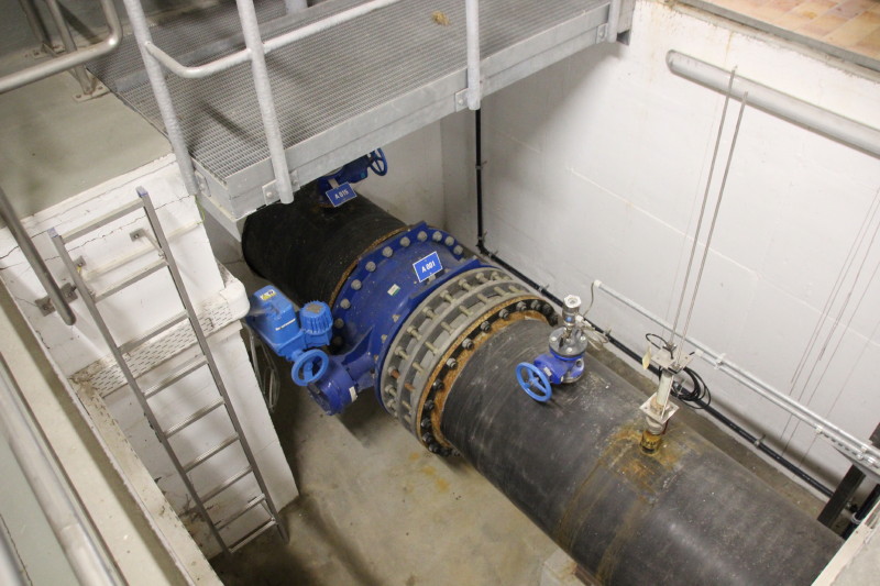 - Eine mannsdicke Leitung verlässt das Pumpwerk in Richtung Stadtnetz.