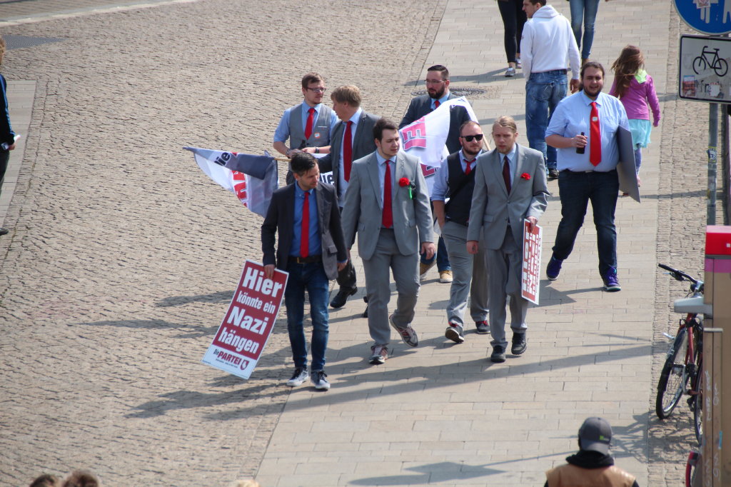 - Vertreter der Partei „Die Partei“ am Riebeckplatz